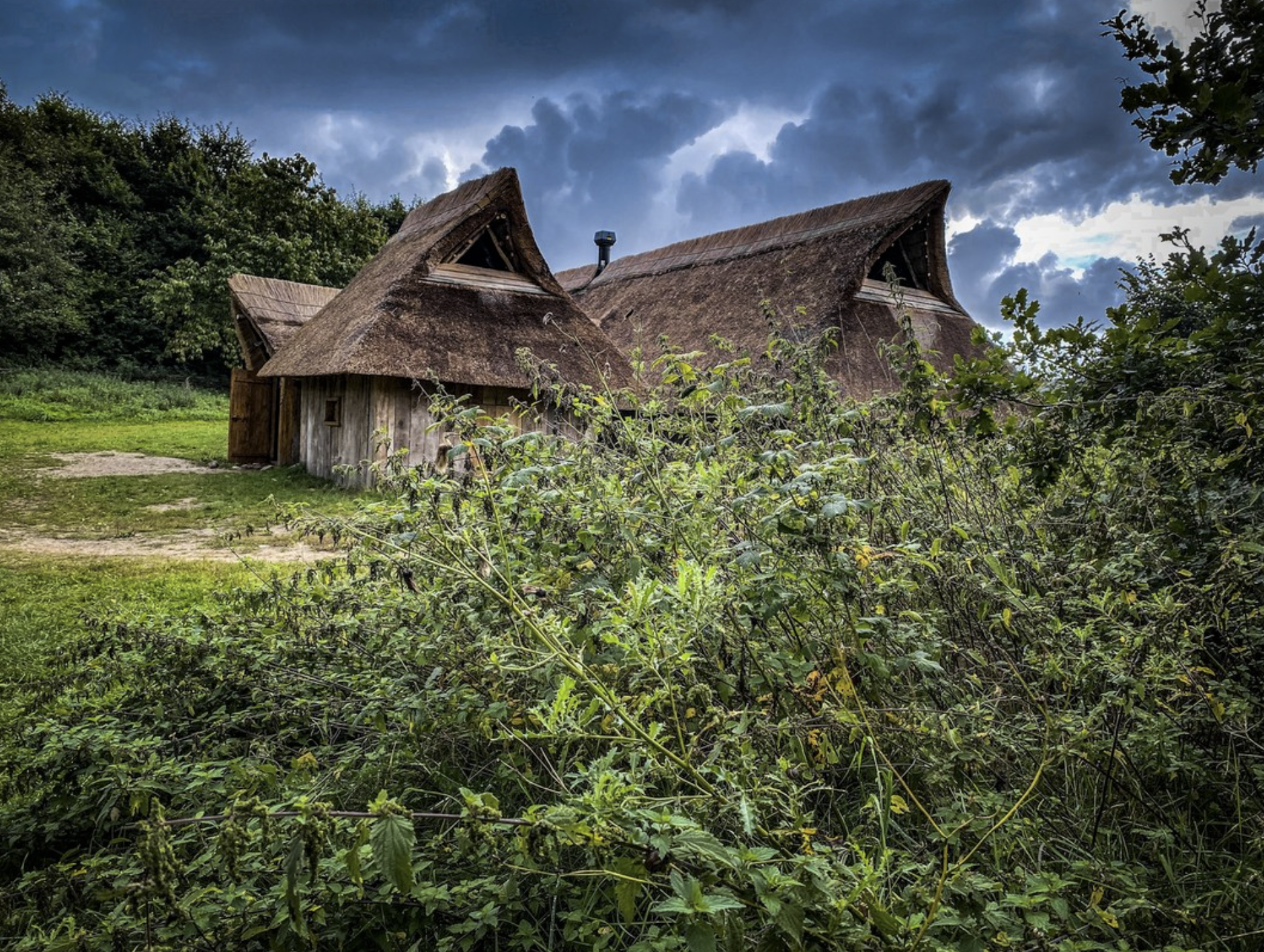 Overbygård er en rekonstruktion af en gård fra en lille jernalderlandsby, der blev udgravet af arkæologer i Nordjylland. Selve landsbyen bestod af kun 10 huse. I jernalderen havde disse huse ligget halvt nedgravet i en bakkeside. Seks af gårdene bestod hver af et hovedhus og et udhus, der var bygget sammen, og havde fælles indgang. Tilsammen udgjorde de selvstændige gårde. Gulvene i husene var gravet en meter dybe.